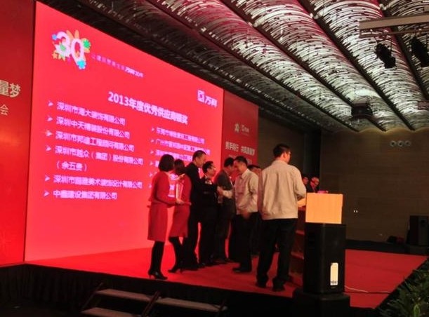 2014年3月13日下午,在深圳萬科2013年度供應(yīng)商春茗會(huì)上,董事長胡冷非先生獲得深圳萬科2013年度“優(yōu)秀供應(yīng)商銀獎(jiǎng)”表彰,得此殊榮,是公司全體同仁同心協(xié)心、辛勤努力的結(jié)果,2014希大家再接再勵(lì),爭創(chuàng)更大輝煌。