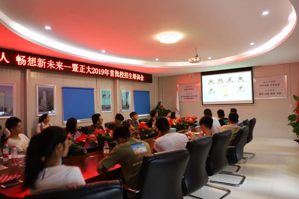 通過校招面試通過的首批同學于2019年7月31日安全抵達深圳。8月1日在人事行政部的安排下在萬科總部基地項目舉行了“迎接新家人,暢想新未來---暨正大2019年首批校招生培訓會”。由正大各主要部門對其進行為期一天的專業(yè)知識培訓。