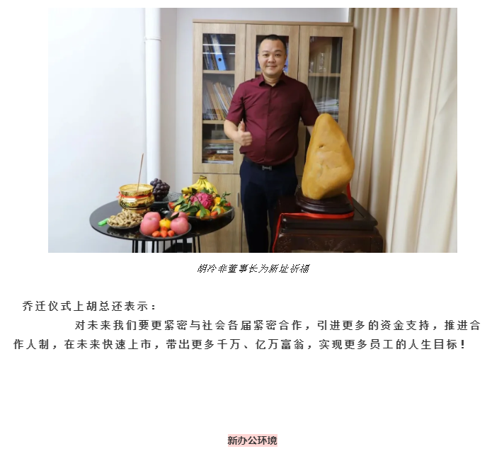 在10月31日上午的喬遷儀式中,胡冷非董事長攜公司高管及各部門負(fù)責(zé)人一起祭拜祈福,這是正大歷時發(fā)展14載后再次升級辦公場所。